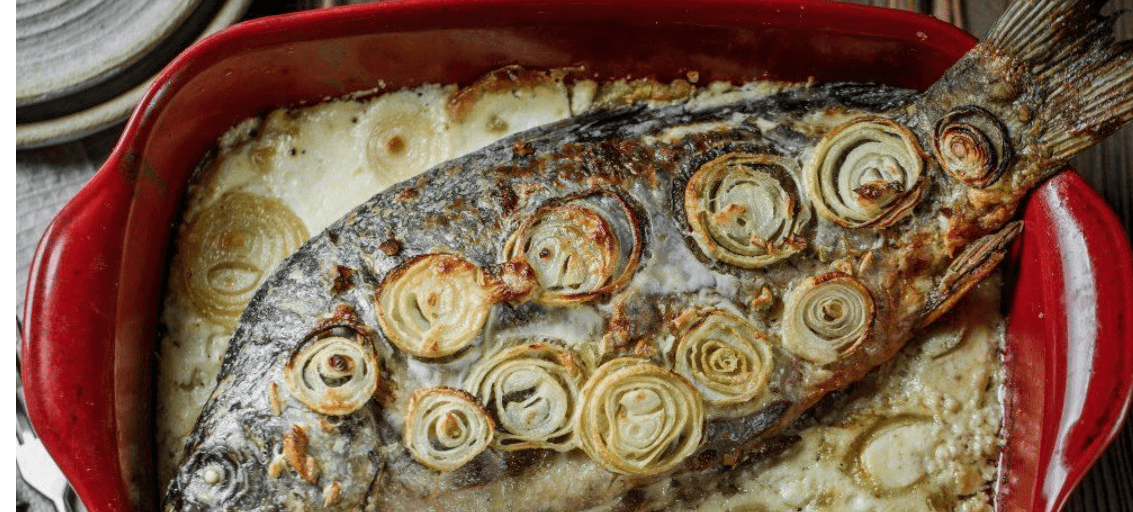 Рецепт: смажите багато цибулі (близько 3 кг), обсмажуєте коропа, викладаєте цибулю зверху, заливаєте півлітром сметани і запікаєте 50 хвилин. Риба стає неймовірно ніжною.