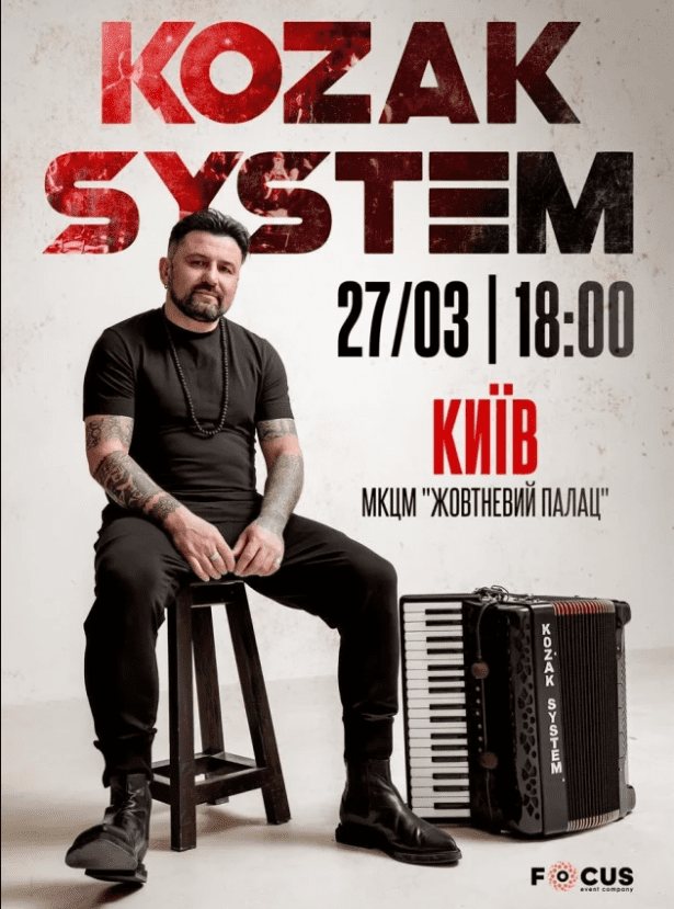 Енергія Kozak System — не просто музика. Це явище, яке накриває з першої ноти й не відпускає ще довго після того, як концерт закінчується. Один із найяскравіших українських рок-гуртів виступить у МЦКМ (Алея Героїв Небесної Сотні, 1) — початок о 18:00.