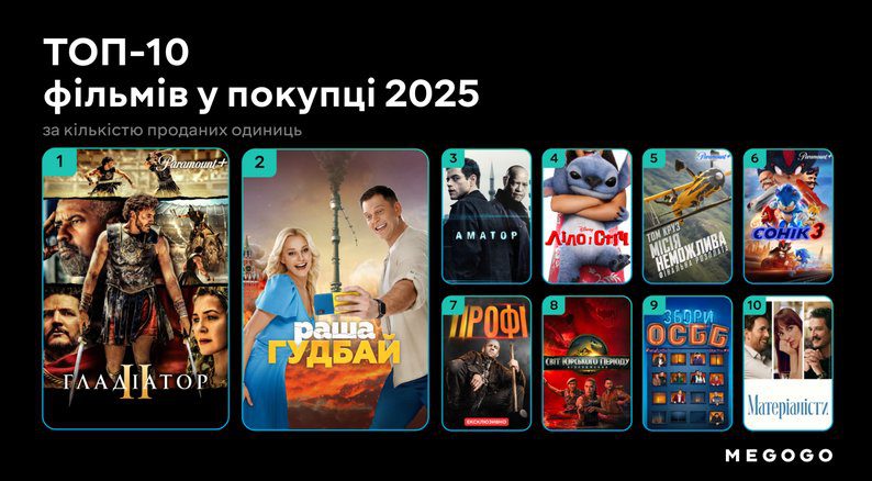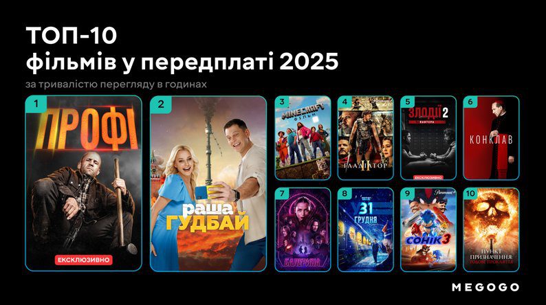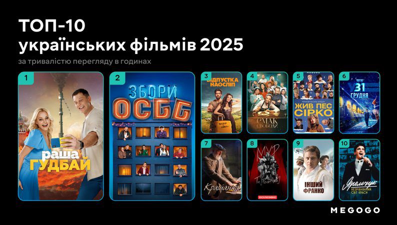 За 2025 рік платформа Megogo додала до своєї колекції понад 12 тисяч одиниць контенту. З них 1 267 позицій — це фільми та серіали українського виробництва, що свідчить про зростаючу увагу до вітчизняного кіно.