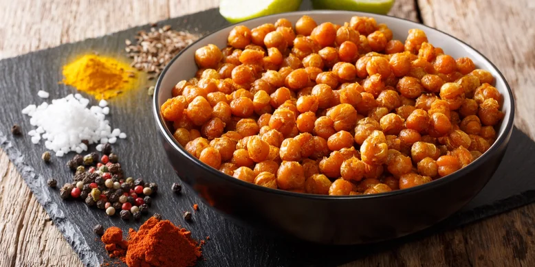 Якщо хочеться чогось на кшталт чіпсів, але кориснішого — смажений нут вирішує це питання. Він багатий на рослинний білок і клітковину, добре хрумтить і чудово підходить під різні приправи: від класичної солі з перцем до куркуми з кмином або кориці з медом. Готується у духовці — просто, швидко, без зайвого жиру.