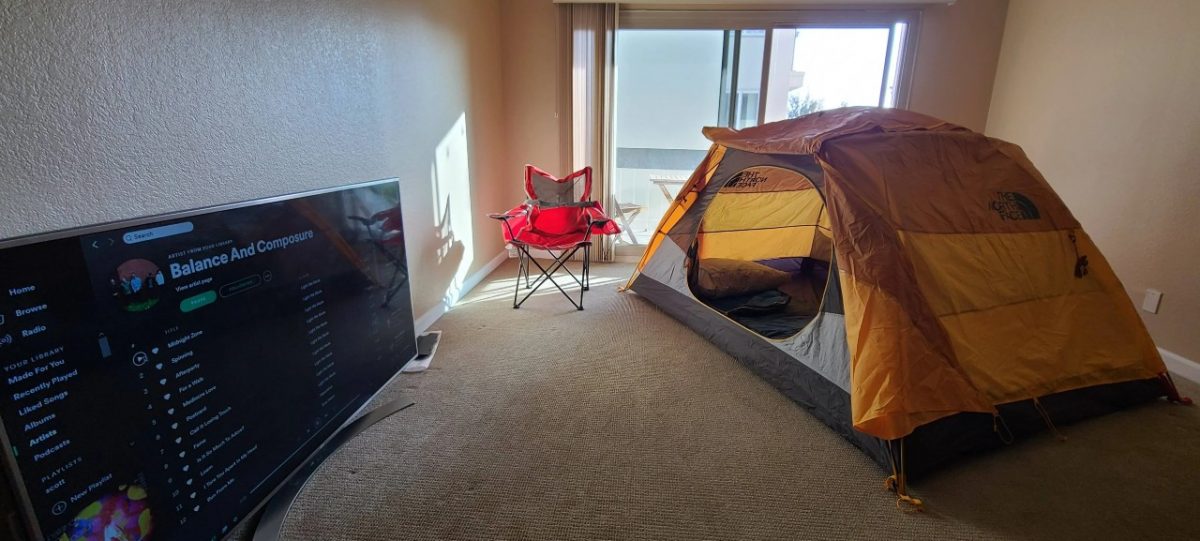 Якщо температура в кімнаті опускається нижче 11 градусів, варто спати в туристичному наметі. Так, це виглядає як «квартирний кемпінг», але насправді дуже ефективно. Утеплені намети коштують від 4000 гривень, але якщо є у знайомих — беріть в оренду. Для дітей це ще й захоплива пригода.